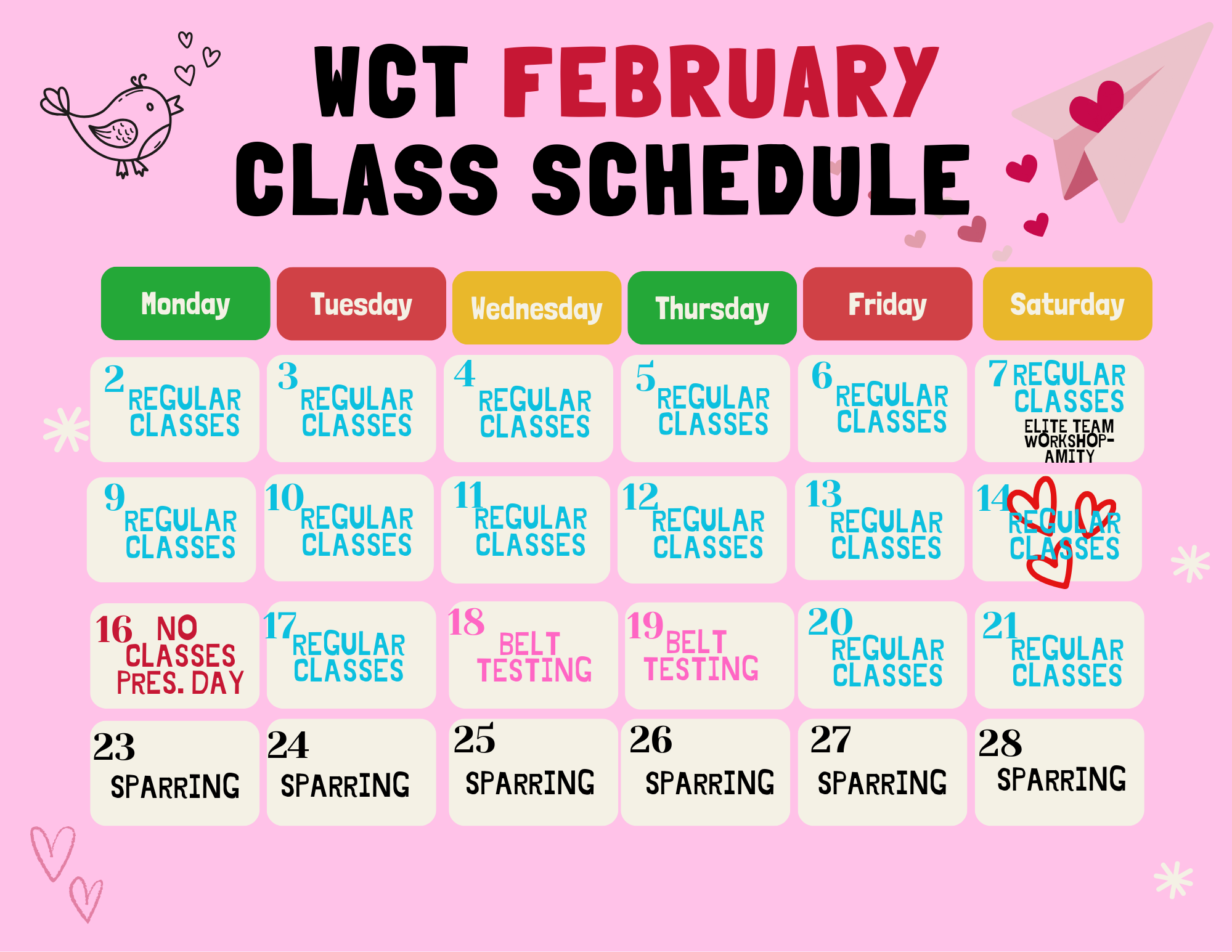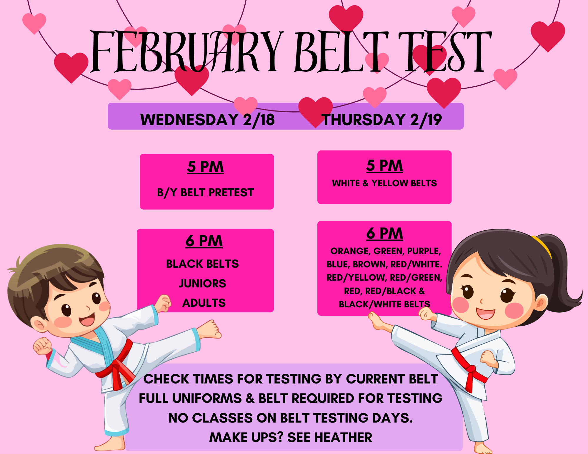 Belt Testing and February Schedule